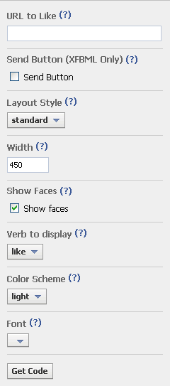 2.「Step 1 – Get Like Button Code」で設定。